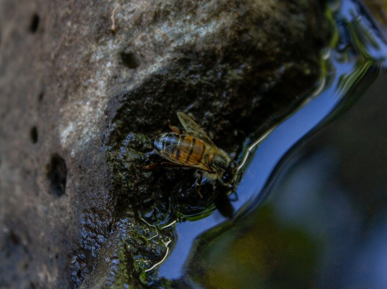 Busy bees do their work but also connect with other fellow bees in their hive. Even they must stop for water!